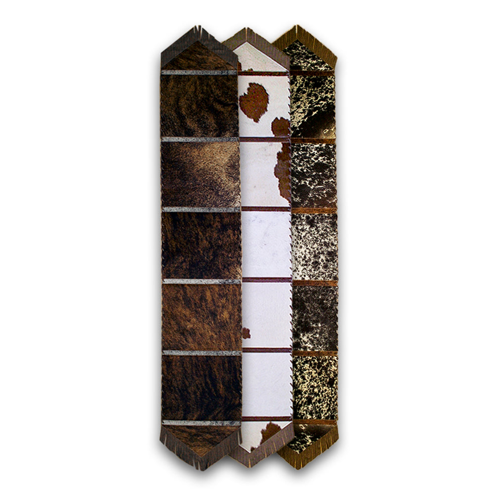 These natural cowhide table runners bring rustic elegance to any dining or display surface. Each runner is crafted from genuine cowhide and features unique, nature-inspired designs that highlight the natural variations and textures of the hide. With patterns ranging from classic speckles and spots to more intricate, artisanal designs, these runners showcase a palette of rich browns, tans, and creams. Durable yet soft, they add a distinctive Western charm, making them a statement piece for any table setting.